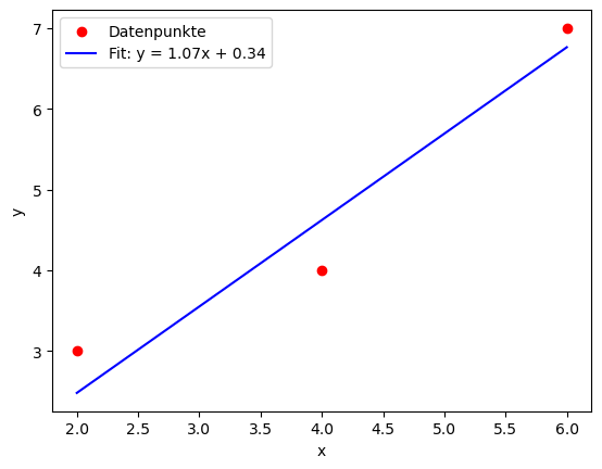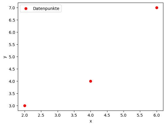 \(P_1(2,3), P_1(4,4), P_3(6,7)\)In einem Koordininatensystem lassen sich diese drei Punkte so darstellen: